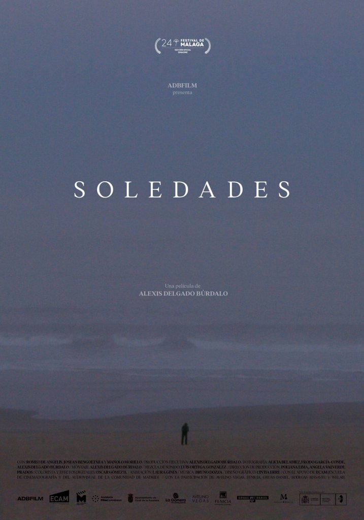 En rueda de prensa Alexis delgado, artista multidisciplinar, es pianista, cineasta, poeta,… presenta una película que el mismo define como un viaje en tres cuadros sobre la soledad y el desamparo, en tres etapas diferentes de la vida. Soledades se distribuye en tres diferentes cuadros: en el primer cuadro se presenta a un niño solitario que descubre cómo su reino es rechazado por la realidad. En el segundo vemos el rostro de un hombre que pasea por una ciudad, pero no sabemos qué quiere. En el tercer y último cuadro somos testigos de un viaje en la mirada de un desconocido: una ermita, un bosque, una playa.