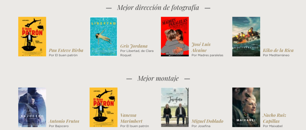 Una sola mujer nominada frente a tres hombres. Ella es la única debutante mientras todos ellos ya tienen algún Goya. Alcaine acumula cuatro (El Sueño del mono loco, Belle Epoque, El caballero Don Quijote y Las 13 rosas) de las veinte nominaciones conseguidas. Uno de cinco es el balance para Kiko de la Rica, que lo ganó por Blancanieves. Birba solo necesitó ser nominado una vez para ganar por su trabajo en Caníbal. Y como bien apunta Javi Castañeda, en los últimos diecisiete años han ganado este premio diecisiete personas distintas. Algo que se cumplirá de nuevo si vence Jordana.