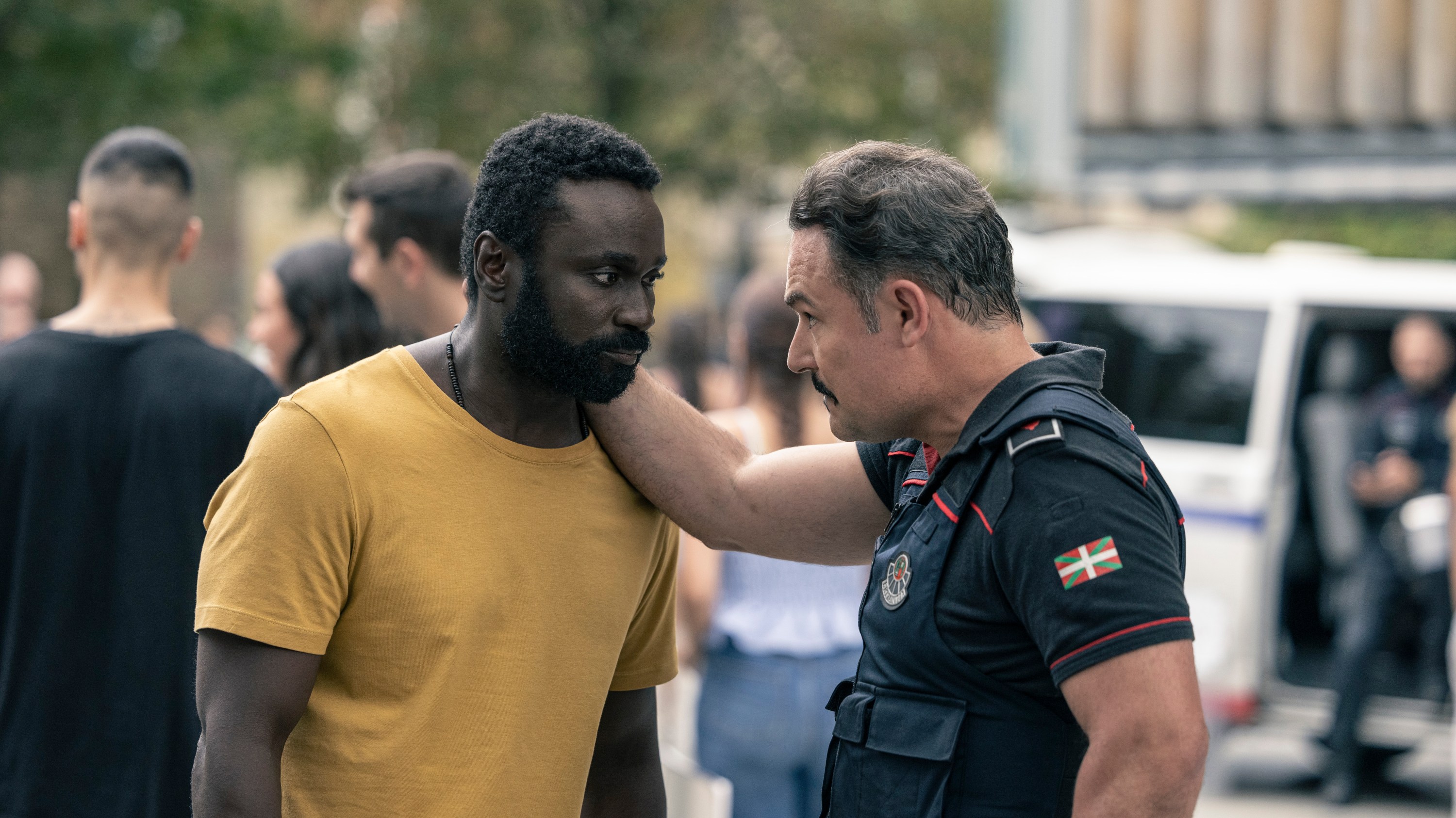 Esa es la historia. Etxebe es un ertzaintza, y lo interesante es que tenga este perfil un tanto oscuro. Ese señor rancio que es racista, incluso puede llegar ser homófobo…representa toda esa casposidad. Cuando conoce a Touré y encima ve que es más listo que él, se enrabieta más. La evolución de esa relación me parece muy interesante y muy divertida. A veces los actores tenemos que hacer personajes que nos duelen profundamente en el alma, y otras veces hacemos cosas divertidas. Este es uno de los casos en los que la diversión acompaña al trabajo.
