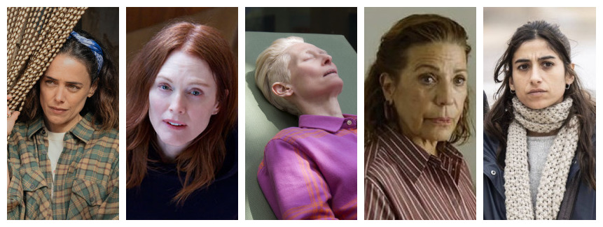 A favor: La expresividad del rostro de Julianne Moore es el faro que ilumina “La habitación de al lado”. A pesar de que su personaje lleva años sin ver al de Tilda Swinton, la actriz de Carolina del Norte consigue que pronto sintamos que la fortaleza de esa amistad continúa intacta. Desde que le comunican la enfermedad de Tilda y su expresión da cuenta del impacto que le produce la noticia, hasta ese reencuentro en el hospital, en el que la agasaja con cariño, Julianne transmite con excelencia el afecto sincero y leal que siente hacia su amiga. Nos encanta cuando se muestra pillina al confesar el buen sexo del que disfrutó con John Turturro y nos impacta observar su reacción atemorizada y compungida al escuchar el plan que ha preparado Swinton. Su colaboración con Almodóvar le ofrece la posibilidad de desplegar su dilatado catálogo de registros, en los que siempre brilla a un nivel altísimo. Ya sea en una escena puramente dramática como en la que rompe a llorar desolada tras comprobar que la puerta de la habitación de su amiga está cerrada o en una de absoluta emoción cuando contempla los copos de nieve rosa, Moore alcanza el punto exacto que su rol requiere. Incluso el maravilloso final de «Dublineses» resulta más emotivo cuando es narrado por ella. Al igual que el personaje de Patricia López Arnaiz, también experimenta acompañar a un ser querido hasta el final, pero la ternura que exuda su Ingrid nos gana desde el primer momento. Solamente con observar la forma en que habla con la hija de Tilda, cuidando con mucho tacto las palabras que emplea, nos hace desear fervientemente que Julianne fuese amiga nuestra. Por si fuera poco, no ha perdido cualquier oportunidad que se le presentara para destacar lo que le fascina El Corte Inglés, con lo que ha terminado de ganarse la simpatía de cualquier español, así que, ¿por qué no adoptarla de la mejor forma posible, que es a través de un Goya a mejor actriz?